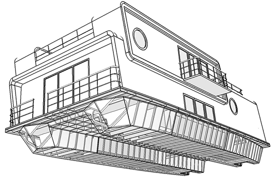 Die enorme Stabilität der GFK Verbundelemente wird unter anderem durch das 2-Rumpf-System erreicht. Das in Sandwichbauweise gefertigte Hausboot mit hervorragend gedämmter Außenhülle bietet ein angenehmes Wohnklima und eine Energieeffizienz ohne Kältebrücken, welche das Niveau moderner Passivwohnhäuser erreicht.